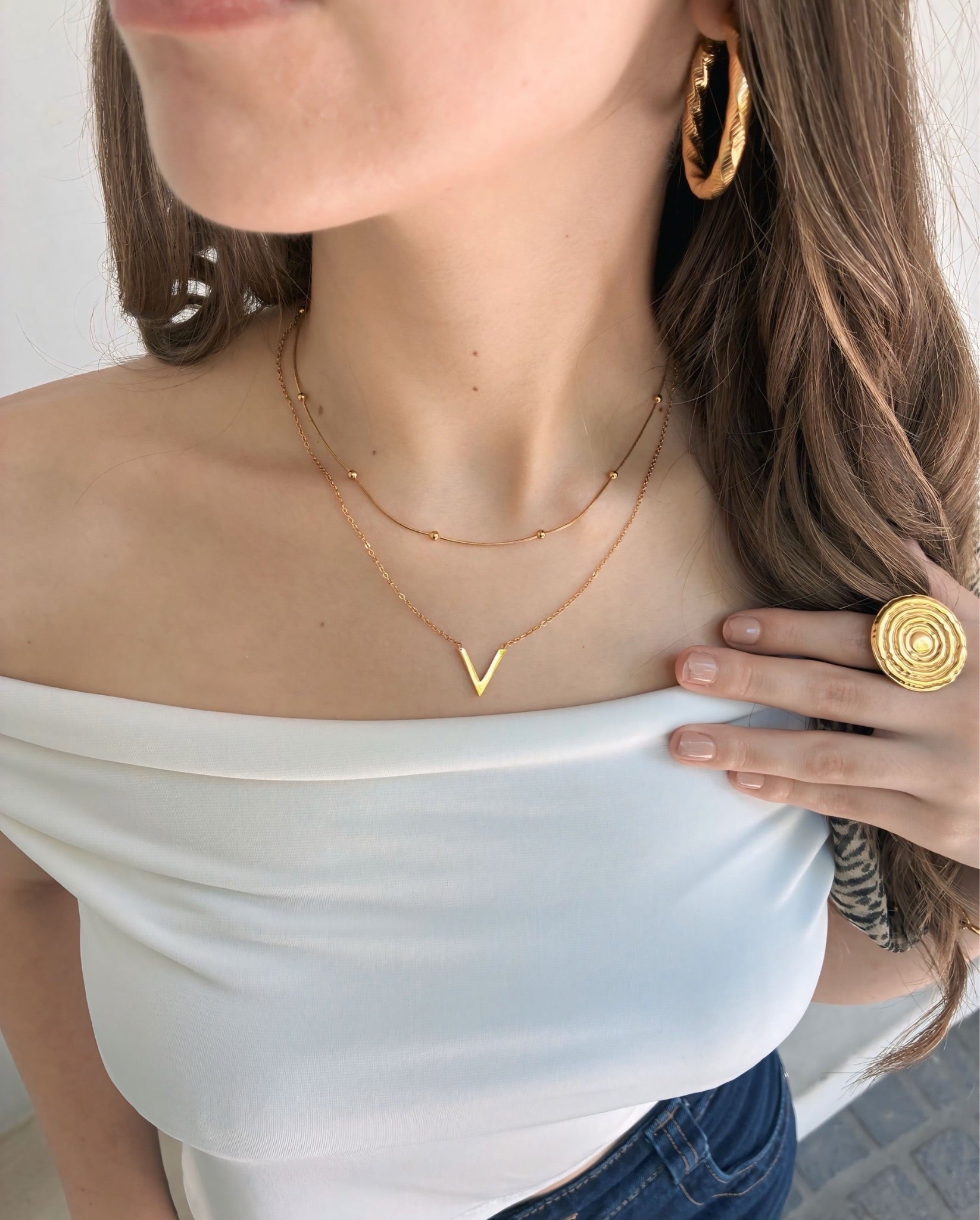 Fabricado en acero inoxidable, enchapado en oro de 18K, es hipoalergénico y waterproof, con alargue ajustable para adaptarse a ti con armonía y sofisticación.